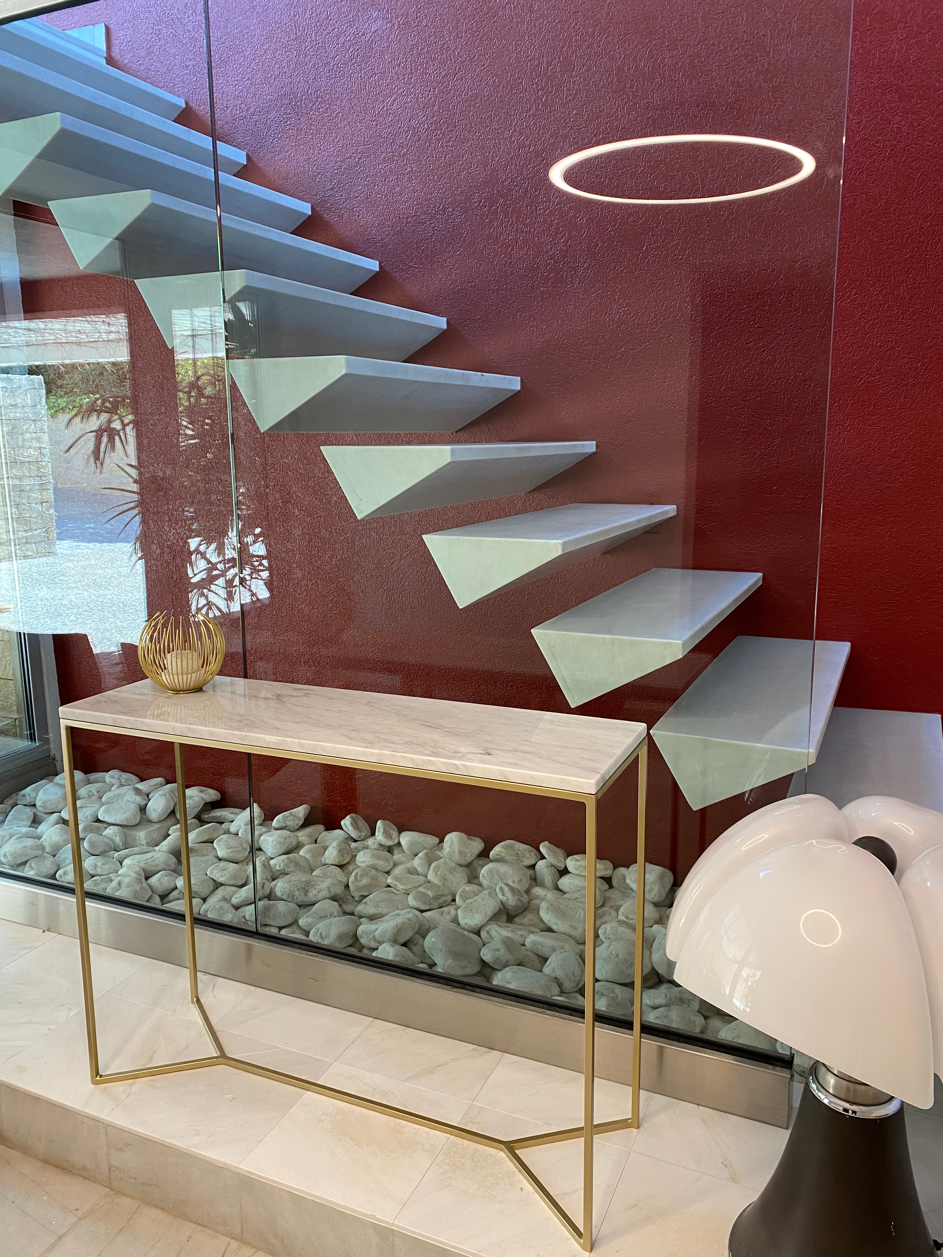 • Table d’appoint ronde en marbre rouge rosso levanto . Peut se mettre en bout de canapé, à côté de vos tables basses, simplement dans une entrée ou alors en guise de table de nuit 💫
