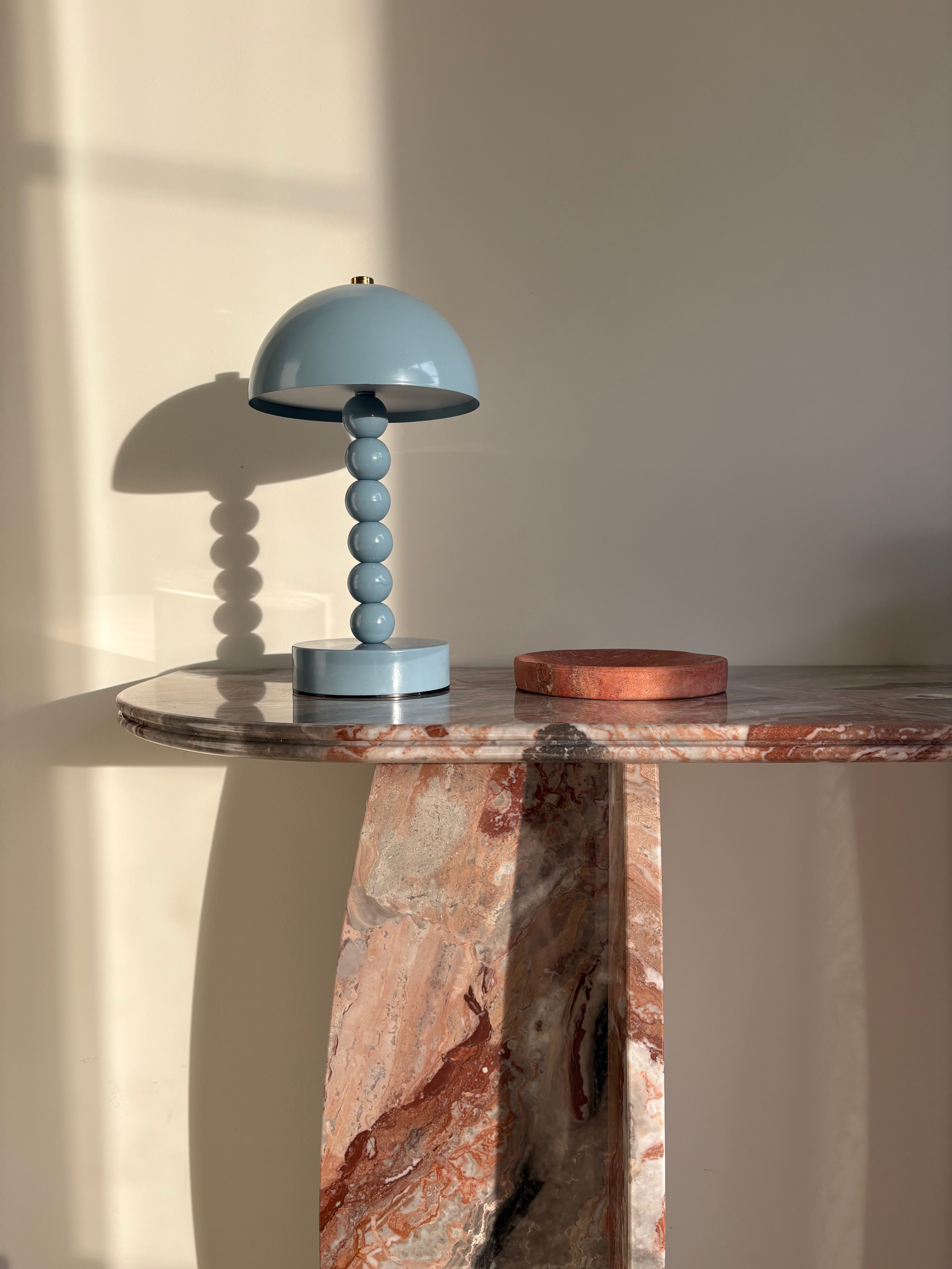 • Table d’appoint ronde en marbre rouge rosso levanto . Peut se mettre en bout de canapé, à côté de vos tables basses, simplement dans une entrée ou alors en guise de table de nuit 💫