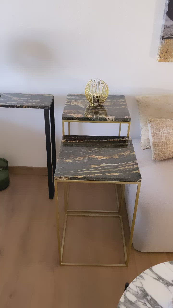• black or gold metal and 2cm thick marble top. Fine and narrow, it will easily find its place in your interior.
