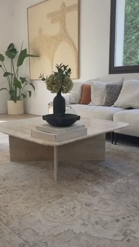 Travertine is a very irregular material which has the particularity of having holes. We have opted for a shiny polished finish which erases this type of defect.