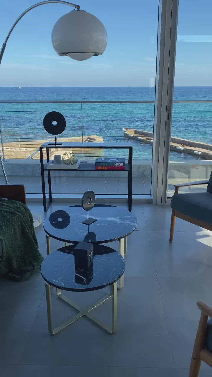 • Table basse gigogne rondes métal & marbre de 2cm d’épaisseur.