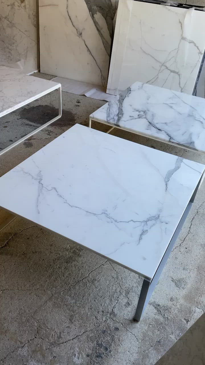 • Table basse carré métal thermolaqué et plateau en marbre.